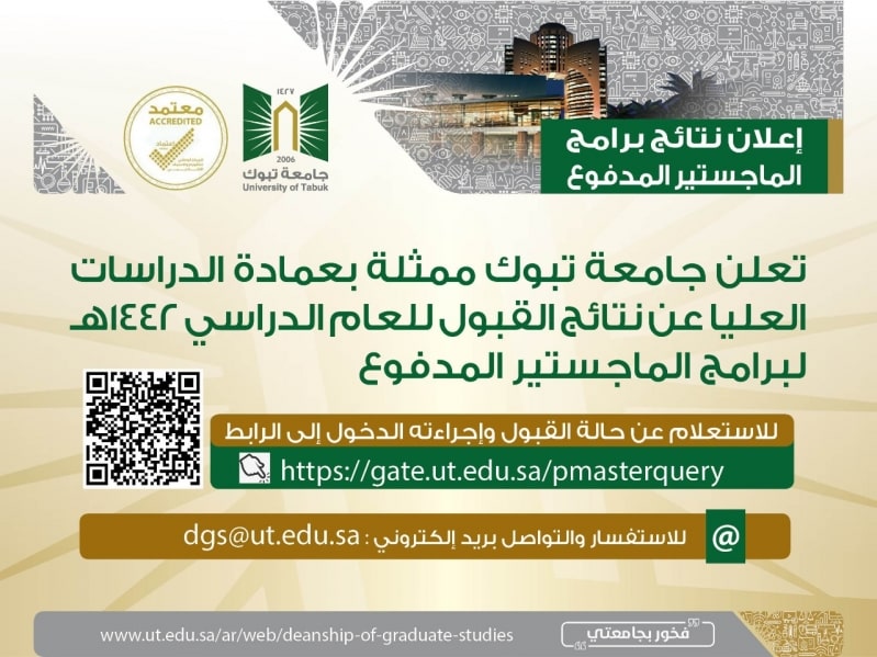 جامعة تبوك تعلن نتائج القبول لبرامج الماجستير المدفوع صحيفة وظائف الإلكترونية