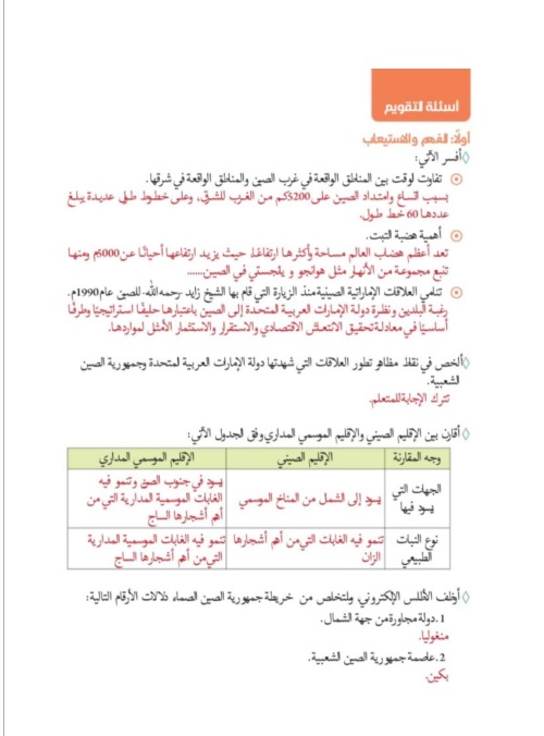 حل درس جمهورية الصين في الدراسات الاجتماعية والتربية الوطنية لصف السادس الفصل الثاني