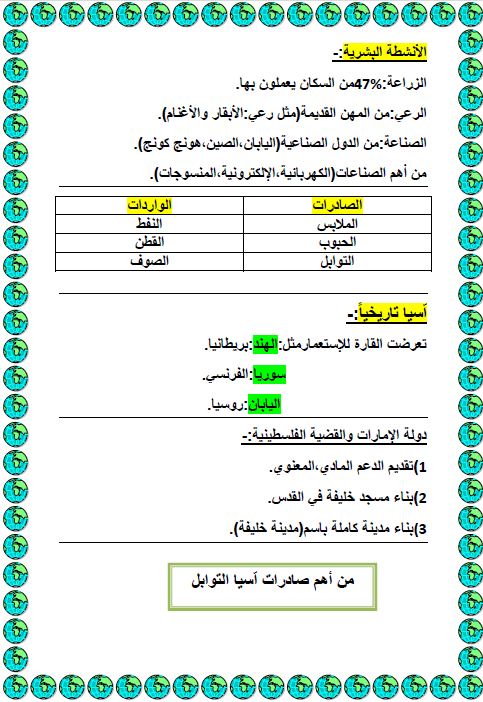 تلخيص درس قارة آسيا ودولة الهند في الدراسات الاجتماعية والتربية الوطنية للصف السادس الفصل الثاني