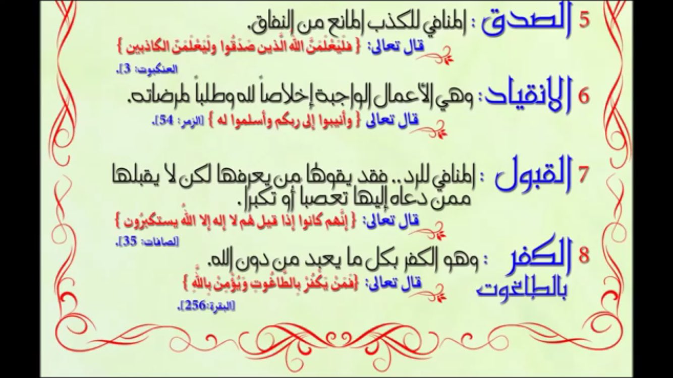 أستخرج من كل دليل شرطا من شروط لا إله إلا الله و أكتبه في الموضع المناسب خبر جديد