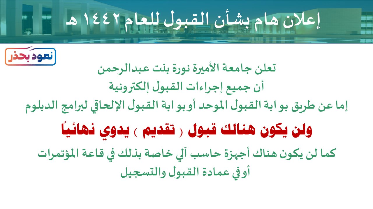 اعلان هام من عمادة القبول والتسجيل ادخلوا منتديات جامعة الاميرة نورة بنت عبدالرحمن