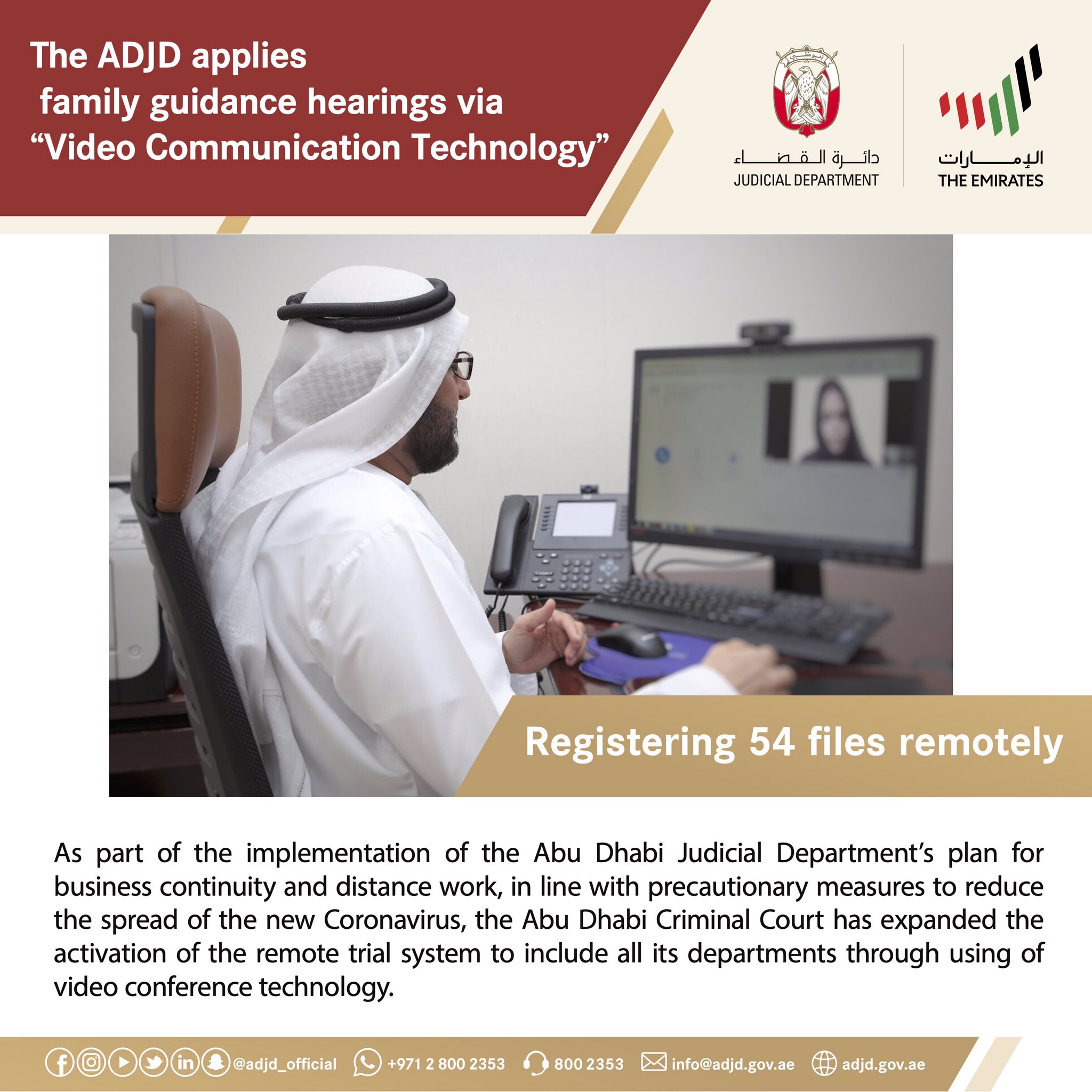 دائرة القضاء أبوظبي On Twitter The Adjd Applies Family Guidance Hearings Via Video Communication Technology